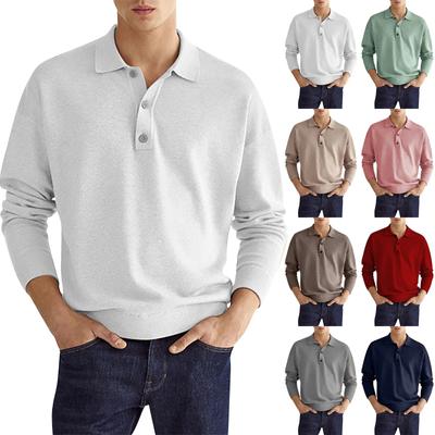 Men's Casual Lapel Business High-quality Solid Color All-in-one Long-Sleeved PO LO Shirt Pullover