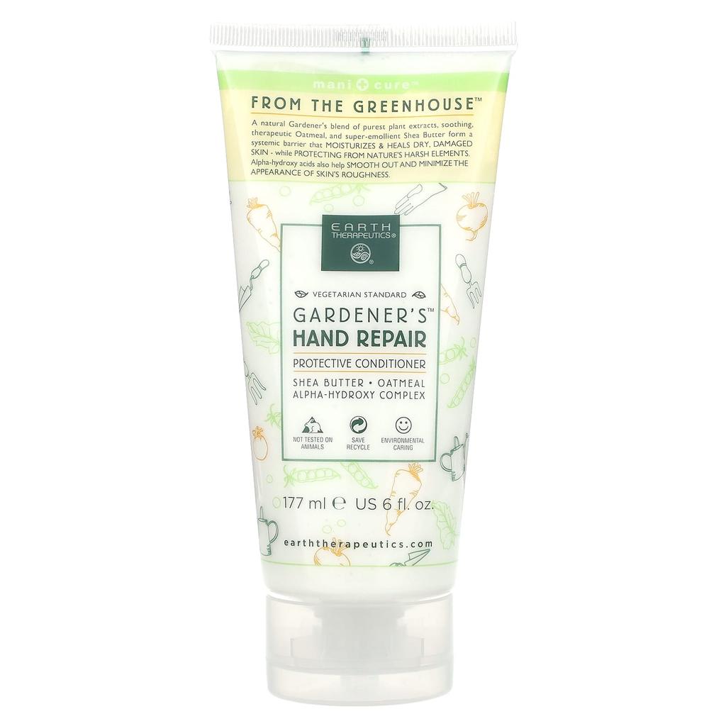 Product Description: Mani+Cure™From Greenhouse™Vegetable BaseShea Butter, Oatmeal, Alpha-Hydroxy ComplexNot Tested on Animals®Cruelty FreeEnvironmental CareTherapeutic Conditioning TreatmentMoisturizes, Repairs, and Protects Dry, Damaged SkinA natural gardening blend of pure plant extracts, soothing and healing oatmeal, and powerfully emollient shea butter forms a full-body barrier to hydrate and heal dry, damaged skin while protecting it from nature’s harsh elements. Alpha-hydroxy acids also help smooth skin and minimize roughness.