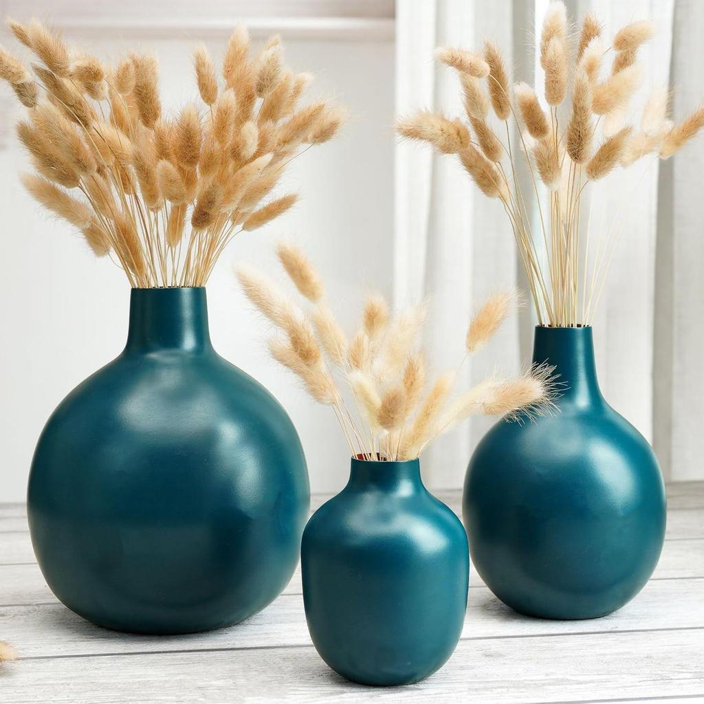 Metal Flower Vase For Home Dcor Living Room Office| Table Decorative Festivals Birthday Opal Blue
