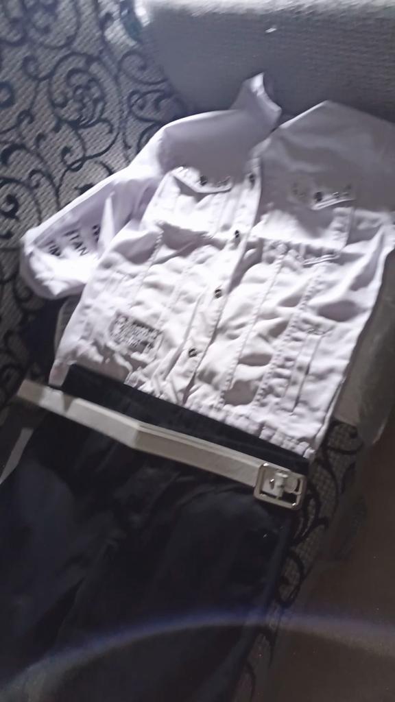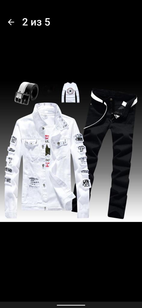 Men's Slim Fit Denim Jacket Pants 2pcs Set Long Sleeve Coats Letters Printed Casual Large Size Black White Red Boys Trousers