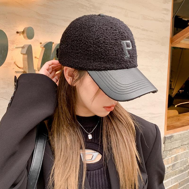 Winter New Hat Women's Fashion P Letter Plush Baseball Cap Versatile Warm Face Small Cap Tide