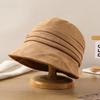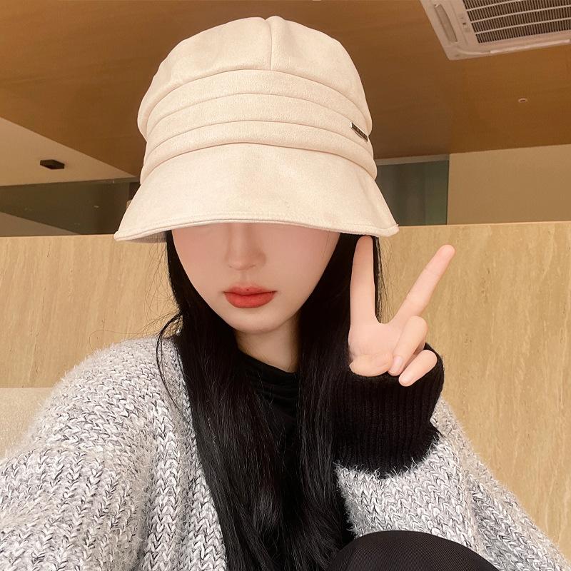 Hat Women's Autumn and Winter New Metal Standard Suede Cap Big Head Circumference Versatile Bucket Hat Shows a Small Face