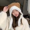 Hat Female Winter Sweet Cute Bear Lace-up To Keep Warm Thickened Bag Head Wool Hat Shows Small Face Big Head Circumference Knitting