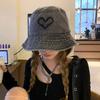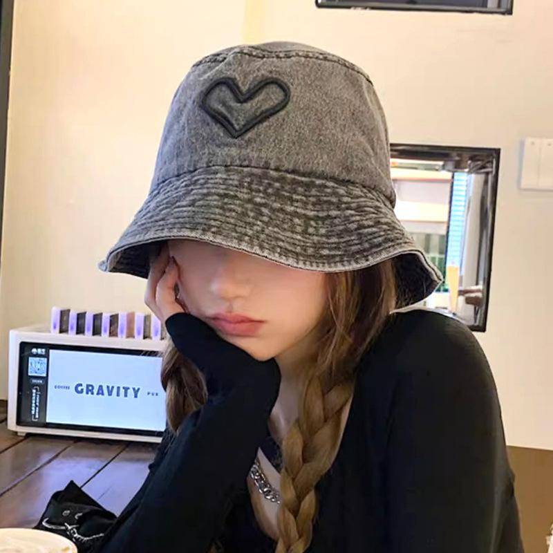 Versatile Street Hat Women Wash Old Denim Bucket Hat Love Embroidery Show Washbasin Hat Tide