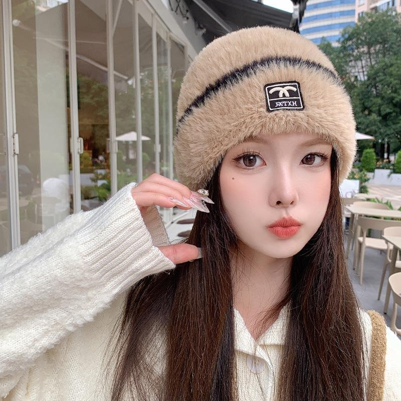 Plush Hat Women's Autumn and Winter Mink Thickened Warm Sweet Cute Knitted Wool Hat Versatile Pullover New