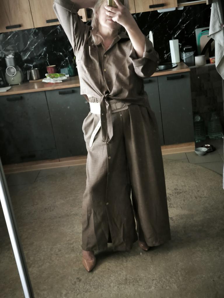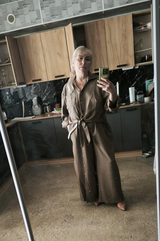 Women's Light Gray Linen Shirt Knot Front Top and High Waist Wide Leg Pants Casual Suit Set
