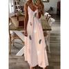 Fashion Sleeveless Feather Print Low Cut V-neck Suspender Dress Slim Fit Elegant Loose Women Summer A-line Party Dresses Casual Simple Woman Clothing
