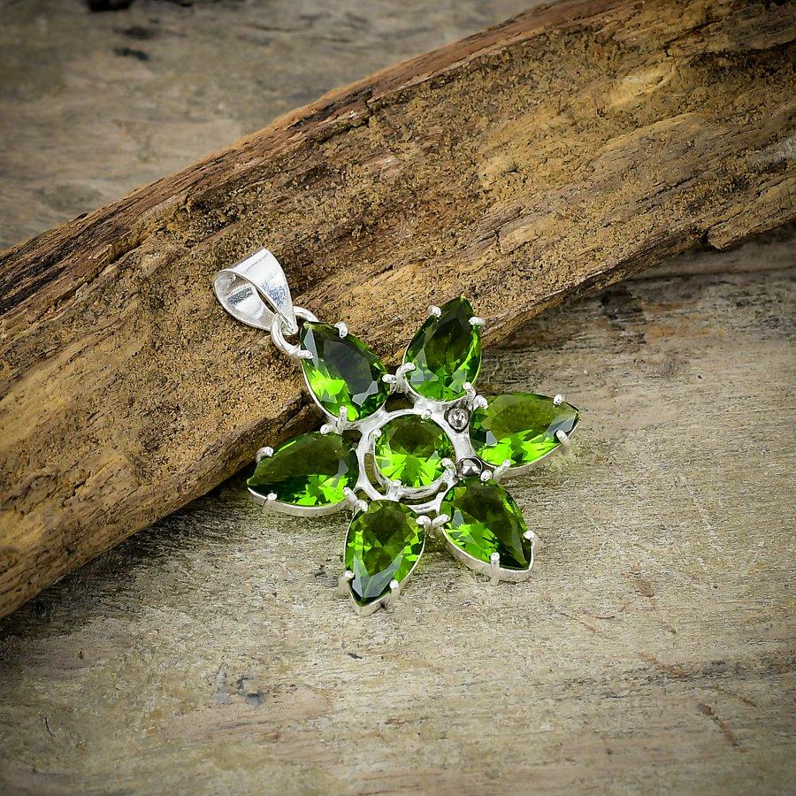 Peridot Gemstone Handmade 925 Sterling Silver Jewelry Pendant 1.77" M-76