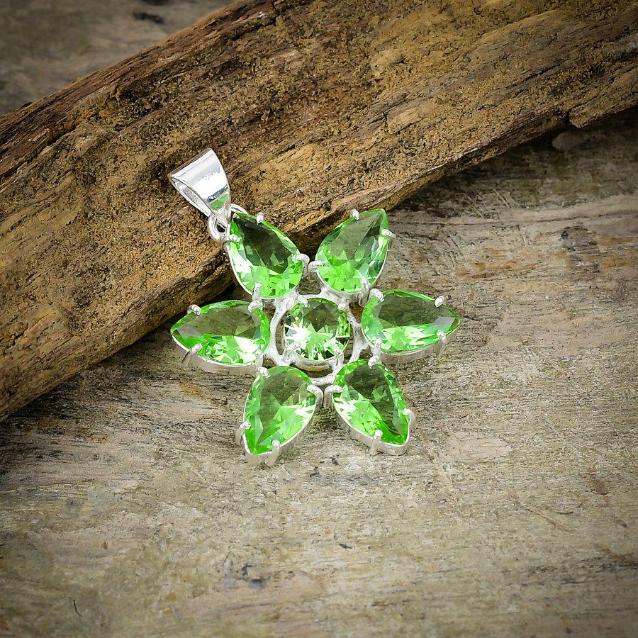 Tsavorite Gemstone Handmade 925 Sterling Silver Jewelry Pendant 1.77" M-81