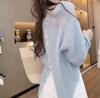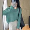 Design Sense Back Button Thin Long-sleeved Sweater Women's Spring and Autumn Short Back Long High-end Knitted Sweater Women