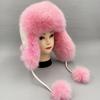Pink Fur Hat Woman Winter Natural Fox Fur Bomber Hats Thick Warm Earflap Trapper Hats Women's Cold Cap