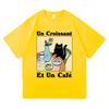 Vintage French Cafe Cat T Shirt Fashion Men/Women Funny Letter Un Croissant Et Un Cafe T-Shirt High Quality Cotton Tees Shirts