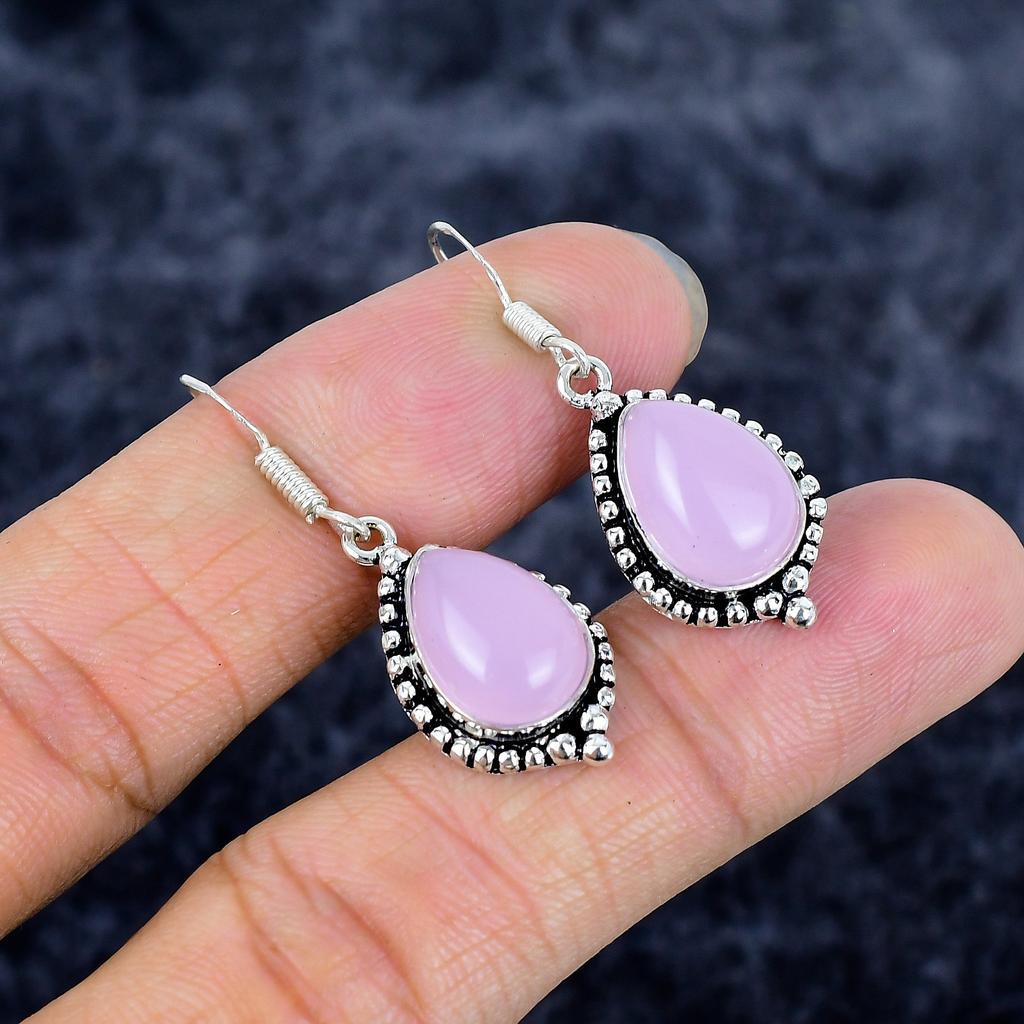 Pink Chalcedony Gemstone Handmade 925 Sterling Silver Jewelry Earring 1.58" M-3360