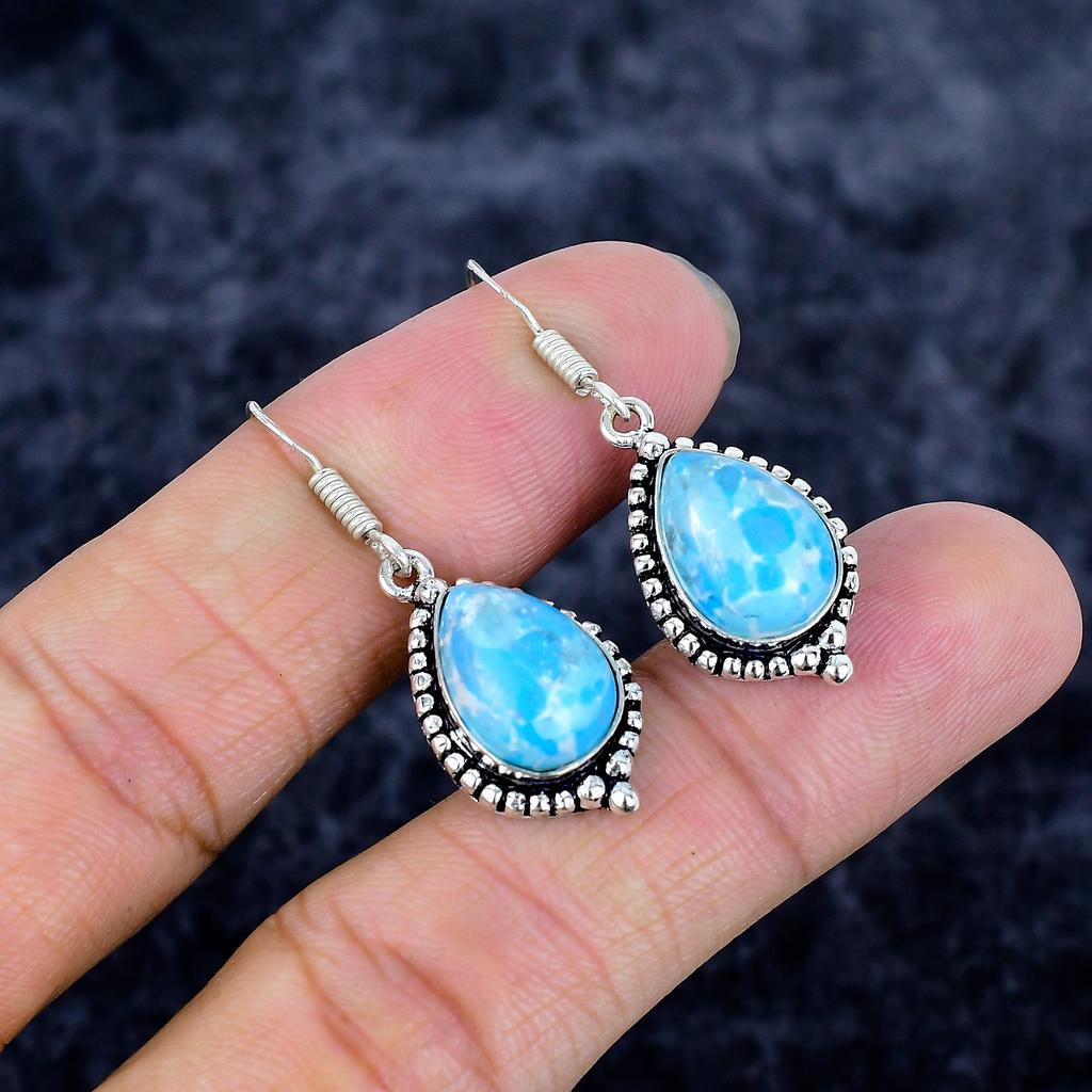 Larimar Gemstone Handmade 925 Sterling Silver Jewelry Earring 1.58" M-3368