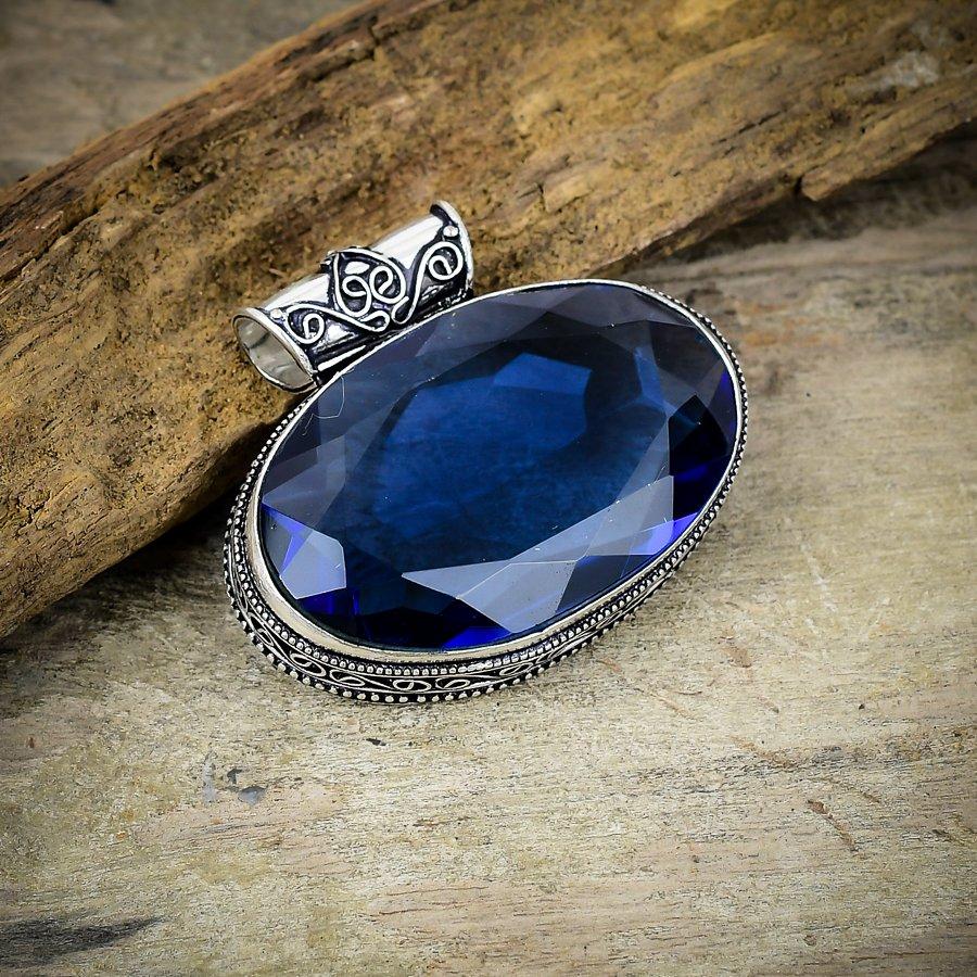 Iolite Quartz Gemstone Handmade 925 Sterling Silver Jewelry Pendant 1.58" M-152