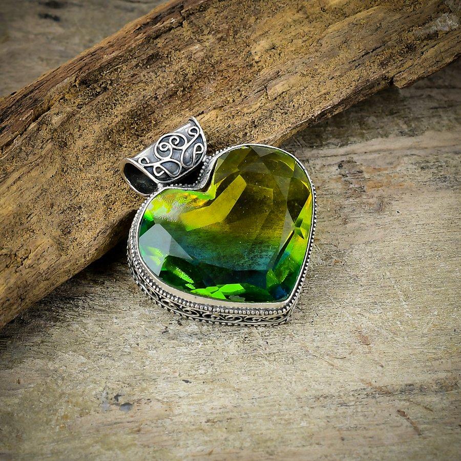 Bi-Color Tourmaline Gemstone 925 Sterling Silver Jewelry Pendant 1.58" M-154