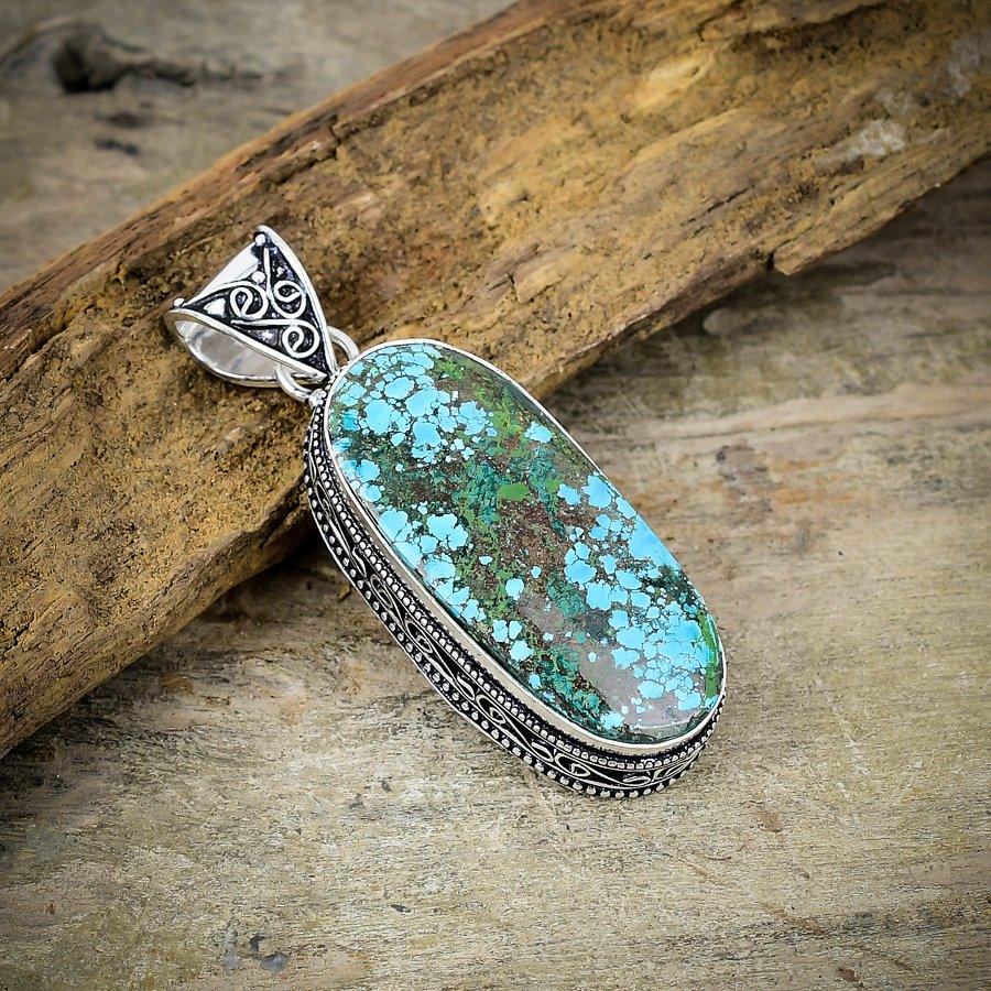 Tibetan Turquoise Gemstone 925 Sterling Silver Jewelry Pendant 2.36" M-161