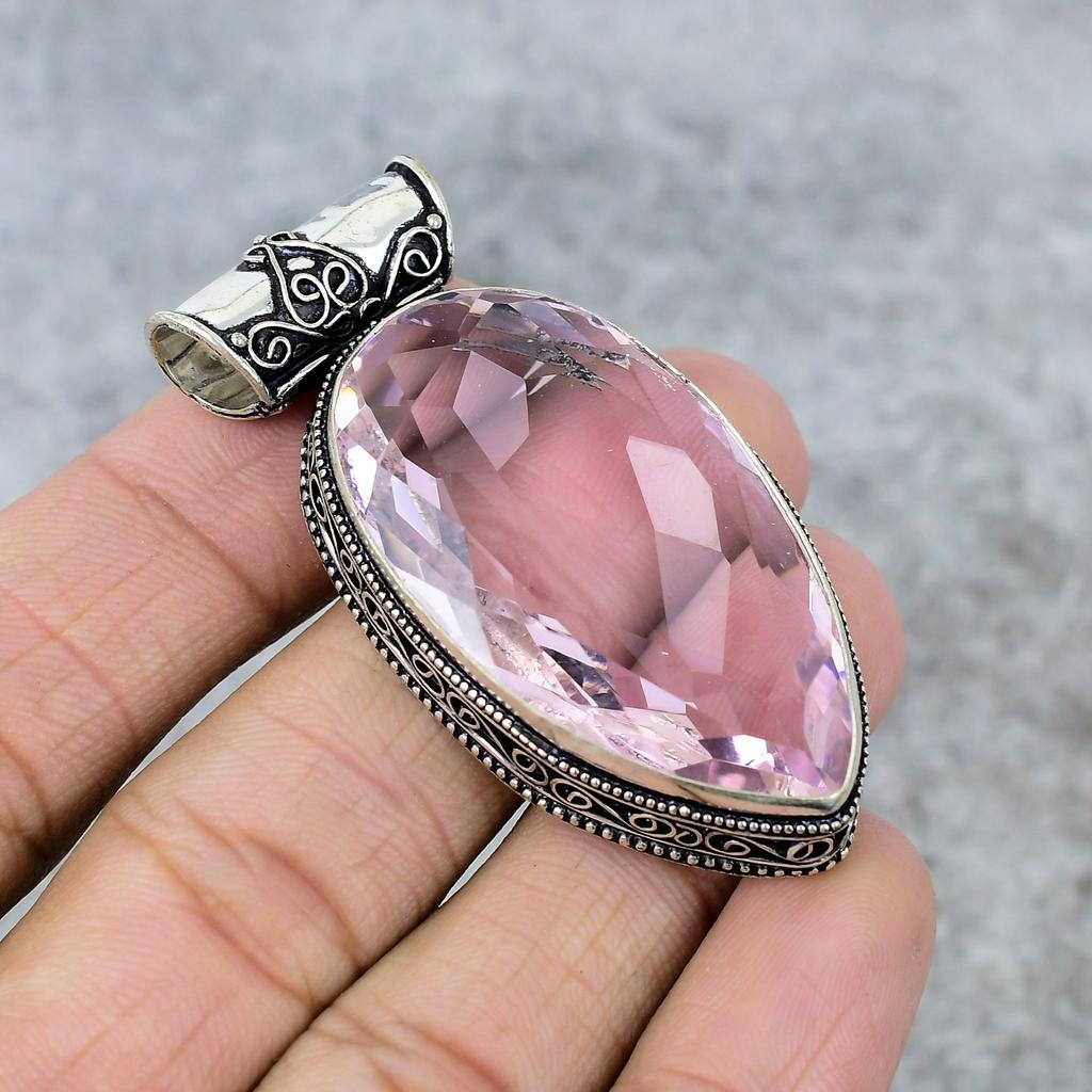 Pink Kunzite Gemstone Handmade 925 Steling Silver Jewelry Pendant 2.68" M-243