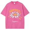 Yellow Cartoon Little Daisy Print Ladies T-Shirt Loose Wash Oversized Short Sleeve American Vintage Street Top