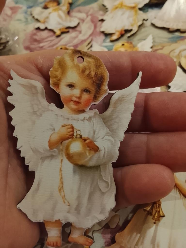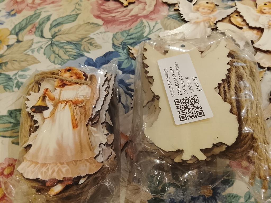 Since the package took 91 days to arrive, I don't feel like reviewing it. I wanted to give them to my friends for Christmas. Now I have to wait a year, the impression is not very good. The little angels are painted well, clearly, but the ties for them are simple linen rope. If they were tied with gold or silver thread, it would be more beautiful and delicate. In the photo, they are even brighter than in real life.