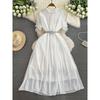 Spring and Autumn New Arrival French Style Retro Round Neck Short Sleeves Chiffon Dress Women's Tight Waist Slim Looking Elegant Pleated Midi Dress