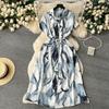 Elegant Dress Women's Summer Dress New Arrival Elegance Print Shirt Skirt Stylish Pocket Waist-Tight Single-Breasted Dress