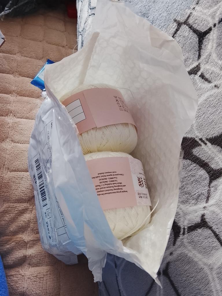 The thread is thin, 50g, the yardage is not indicated, it feels silky, pleasant, I will knit