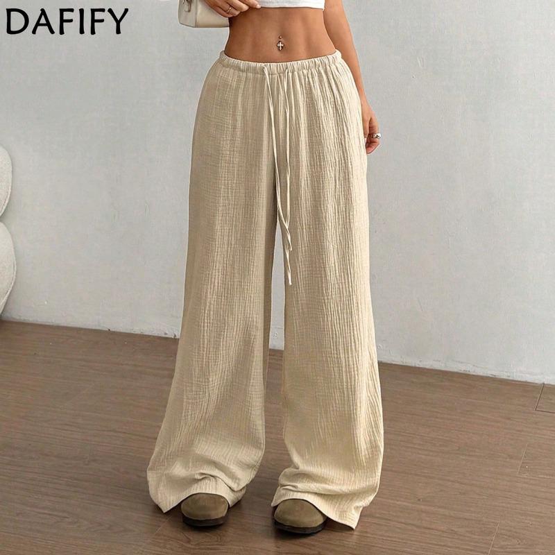 DAFIFY Women's Fashion Casual Solid Color Print High Waist Trousers Pants & Capris