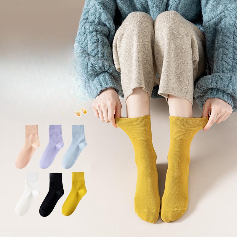 Female Autumn and Winter Pure Color Cotton Anti Odor Anti Pilling Tube Socks