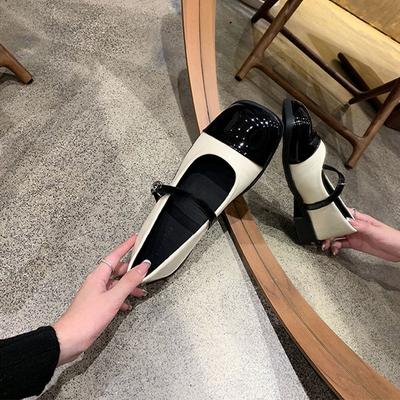 High-end Cowhide Version~ One-word Buckle Belt Color Matching Mary Jane Shoes, Black and White Square Head Retro Thick Heel Single Shoes