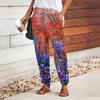 Women Forest Printing Pants Lace Up Elastic Waist Loose Trousers Casual Long Pants Trousers with Pockets