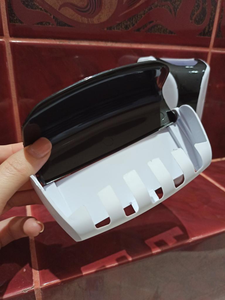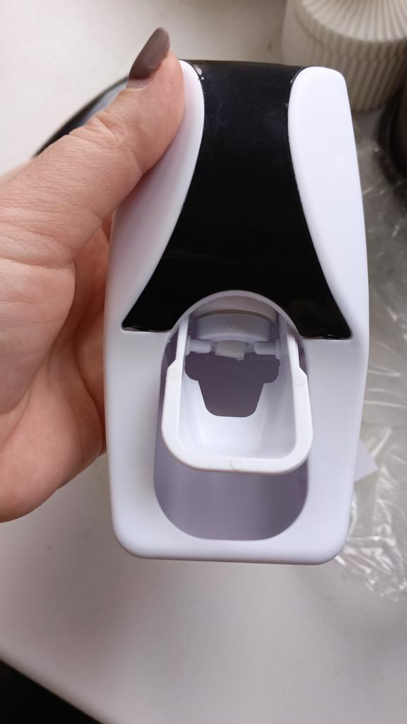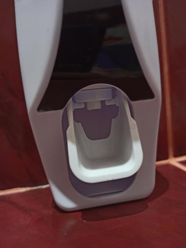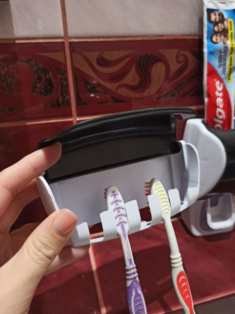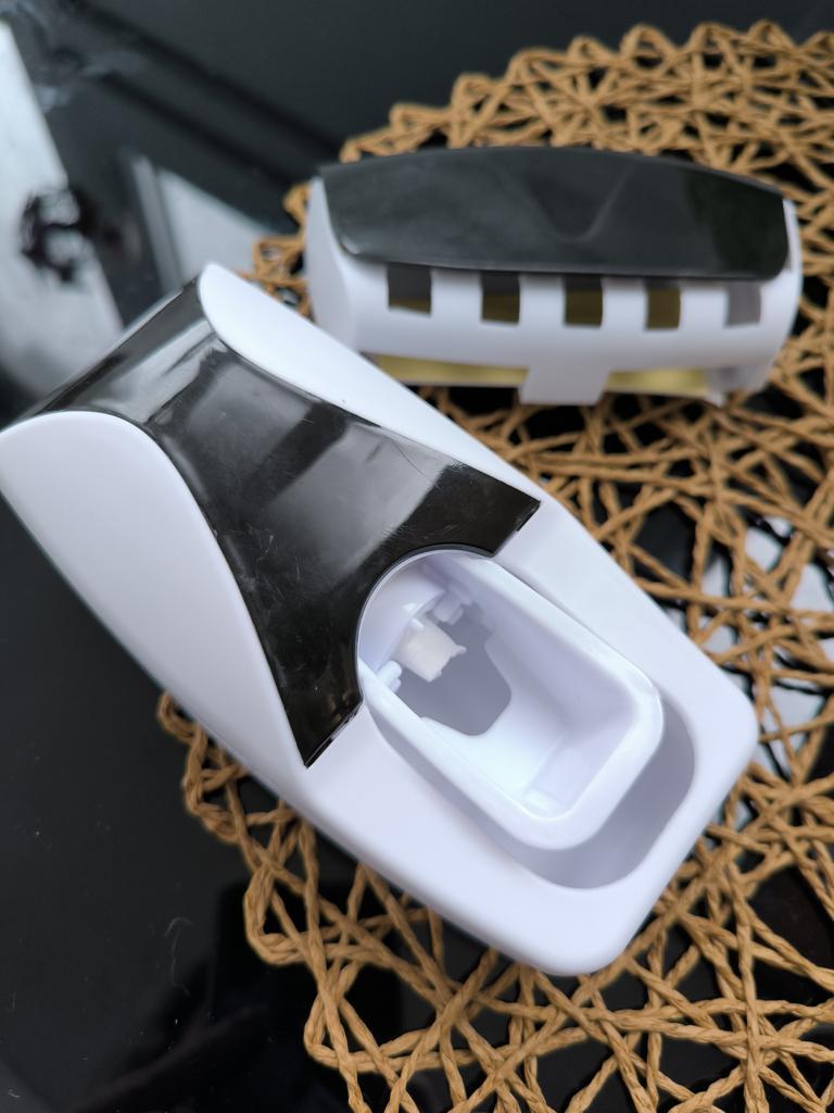 Automatic Toothpaste Dispenser with Brush Holder. The device is designed for economical and hygienic dispensing of toothpaste. It works without batteries; the toothbrush presses on the internal mechanism, which dispenses the paste. The holder is designed to store several toothbrushes in a suspended state, which promotes their drying and cleanliness.