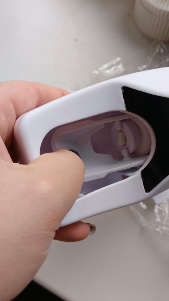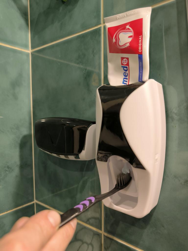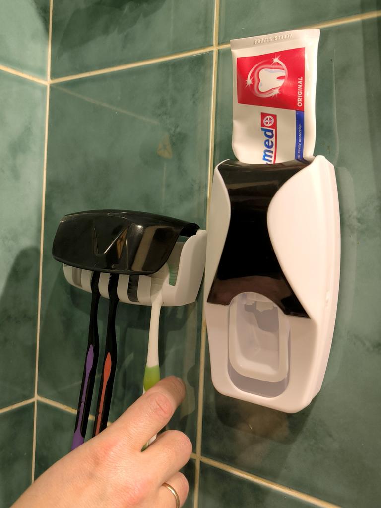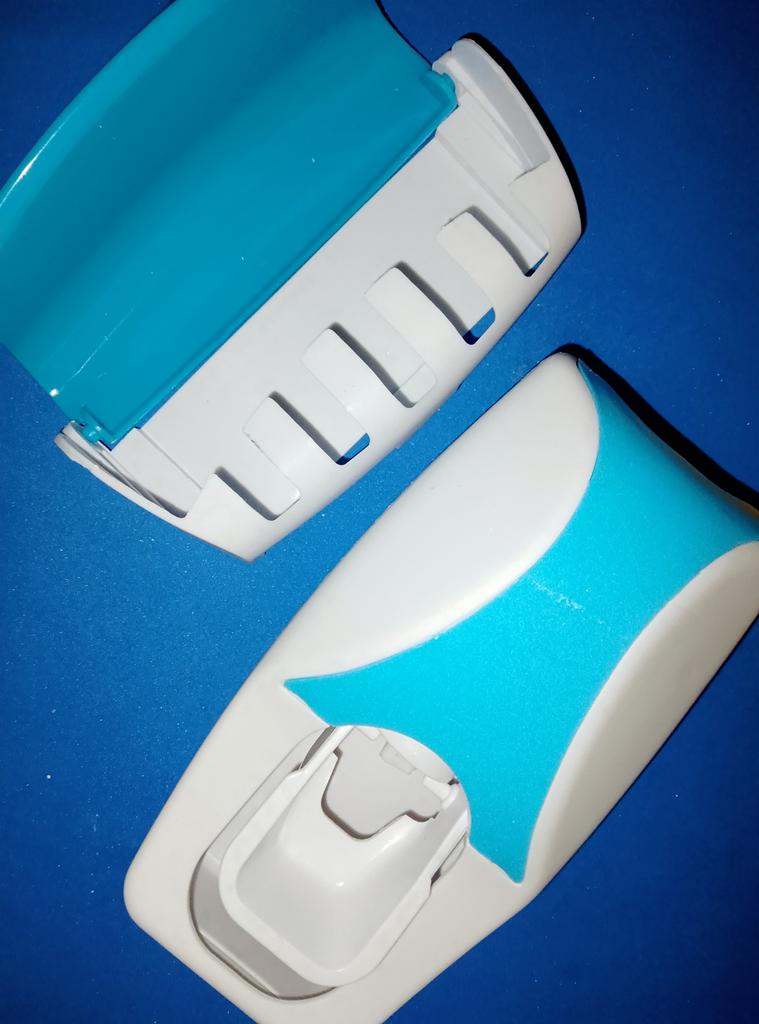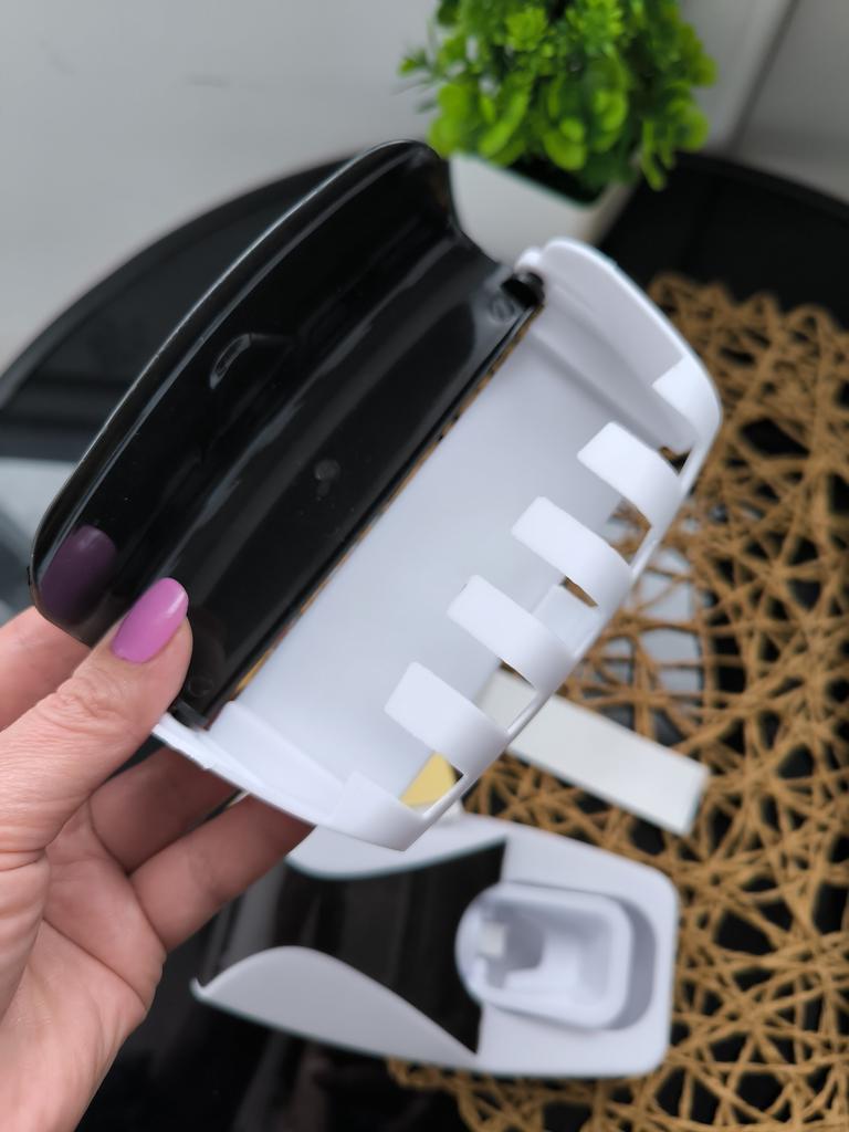 Automatic Toothpaste Dispenser with Brush Holder. The device is designed for economical and hygienic dispensing of toothpaste. It works without batteries; the toothbrush presses on the internal mechanism, which dispenses the paste. The holder is designed to store several toothbrushes in a suspended state, which promotes their drying and cleanliness.