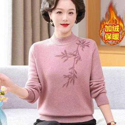 Autumn and Winter Bottoming Sweater Fashion Jacquard Warm Sweater Knitted Sweater for Women Loose Plus Size Mother's Sweater with Plush Sweater