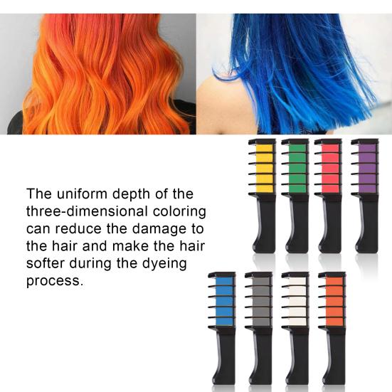 Hair chalk is non-allergenic, water-soluble and environmentally friendly, and can last up to 3 days, just wash the hair with water and shampoo as usual to clean the color. With a fixed comb design, it can be easily applied to the hair from top to bottom without soiling your hands. It is easy to use because the product is with the adoption of minimalistic design.