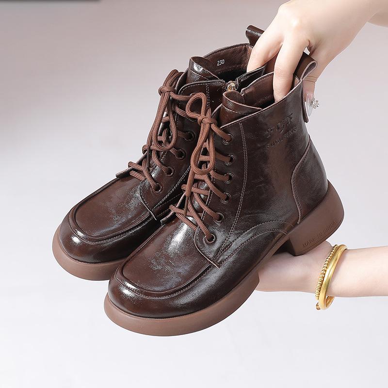 Fashion GKTINOO Women Boots 2025 New Woman Short Boots Soft Genuine Leather Autumn Winter Shoes Square Heels Big Toe Female Footware