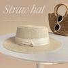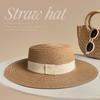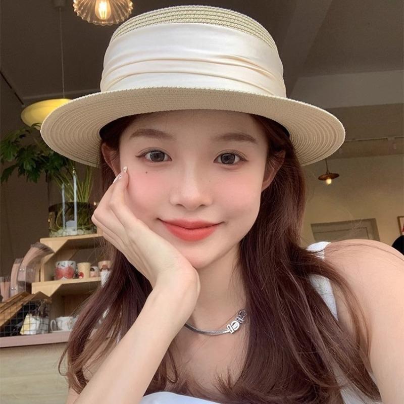 Flat Top Straw Hat Strapped Women's Summer Visor, Satin Versatile Straw Fashion Top Hat, Seaside Beach Hat