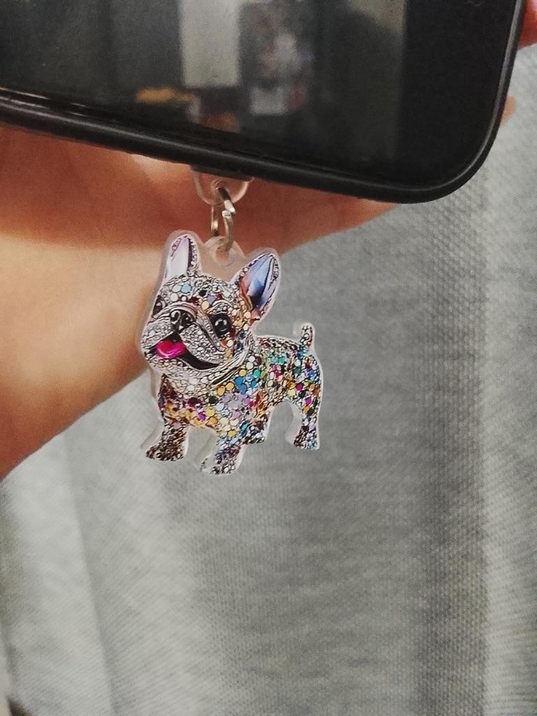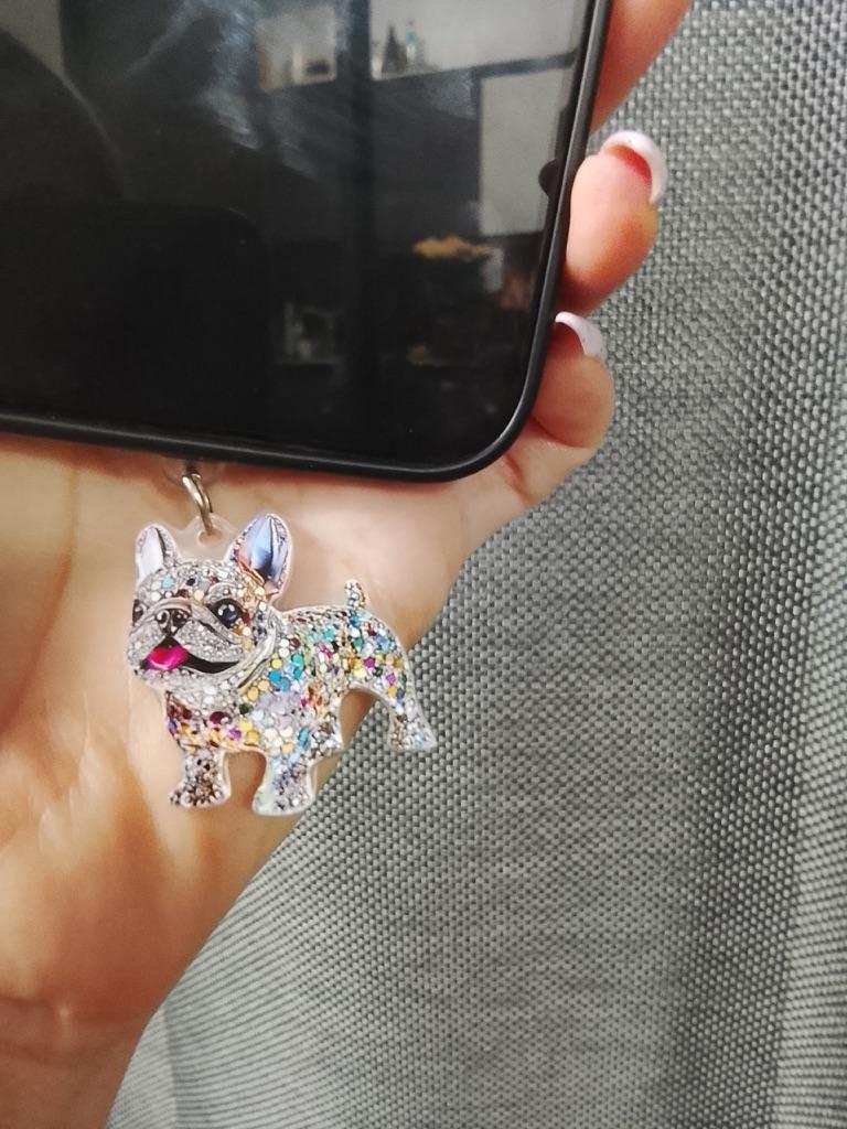 1pc Sparkling French Bulldog Acrylic Dust Plug for IPhone/Type-C Connector - Dazzling Rhinestone Design