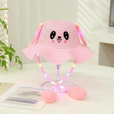 Hat with Moving Ears Will Light Up Children's Sunshade Straw Hat Women's Summer Sun Protection Cute Rabbit Hat Outdoor Scenic Spot