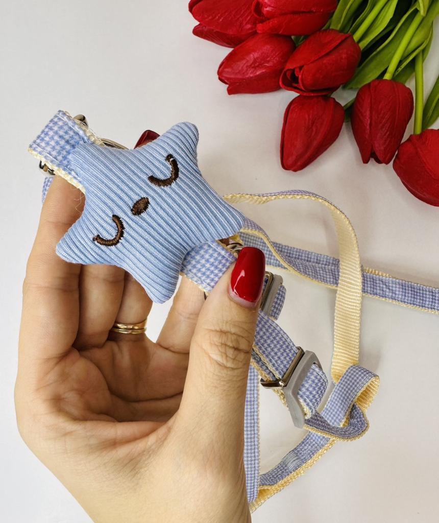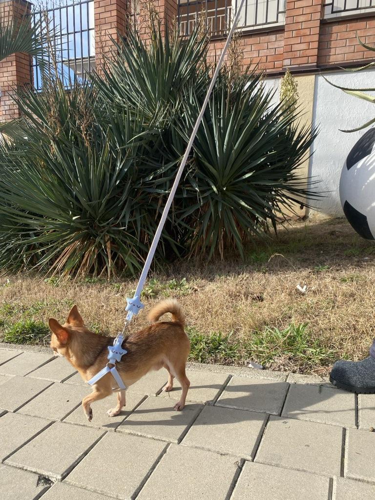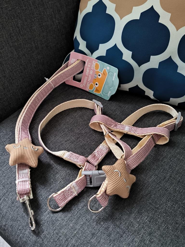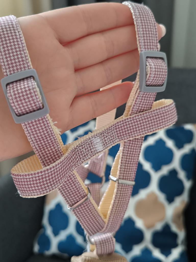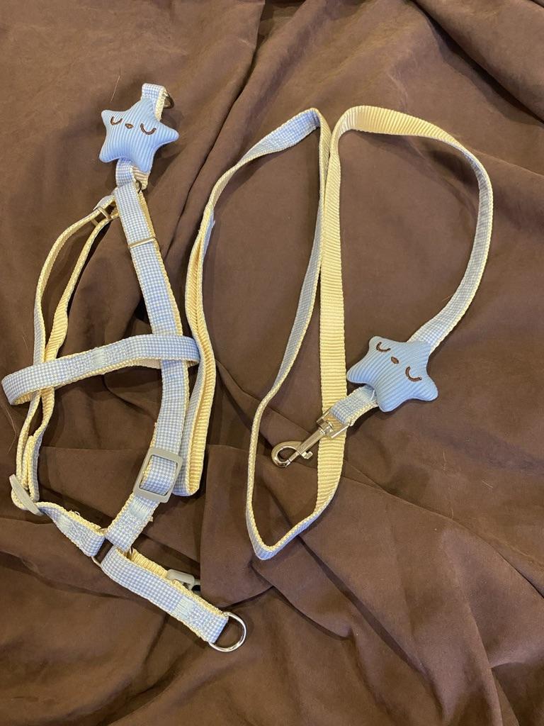 I bought this leash for my dog and I'm really happy! First of all, the design is charming – the "Thousand Birds" pattern with a smiling starfish adds a lot of charm, and I received many compliments on it during walks.. The leash itself is high-quality, sturdy, and very comfortable for both me and the dog. It is easy to adjust to the desired size and does not slip or come loose during the walk.. The chest-back style harness distributes pressure evenly and prevents choking, especially if the dog tends to pull. The material seems durable and pleasant to the touch, and the ability to expand it adds flexibility and comfort.. A highly recommended product for anyone looking for a stylish and practical strap!