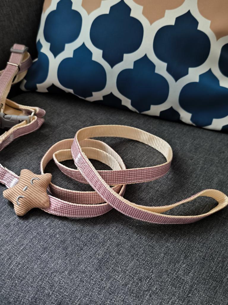 Stunning, high-quality, and comfortable strap! I bought this leash for my dog and I am really happy. First of all, the design with the thousand birds pattern and the smiling starfish is simply adorable – I get a lot of flattering comments when we go for a walk. The harness itself is very comfortable, both for the dog and for me. It is expandable, which allows more freedom of movement on long walks. The chest strap closure is stable and feels secure, and the material is pleasant to the touch and does not scratch the fur.. *Advantages:* - Unique and attractive design - good quality - Fits well and does not slip - Expandable – perfect for any type of trip Highly recommend to anyone looking for a high-quality strap with a fun design twist!