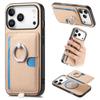 For iPhone 17 Pro Case Ring Kickstand Leather Back Cover with Magnetic Detachable Card Holder