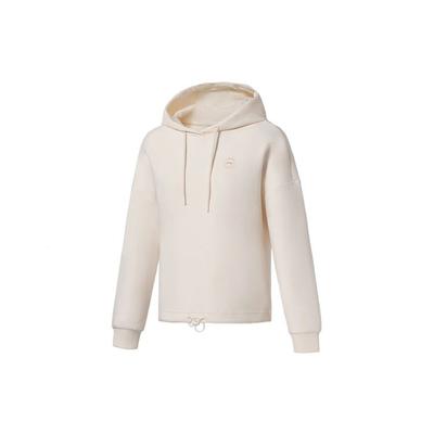 Li Ning Womens Fitness Series Solid Color Loose Hooded Pullover Sweatshirt Women Tops Off-White AWDS036-9