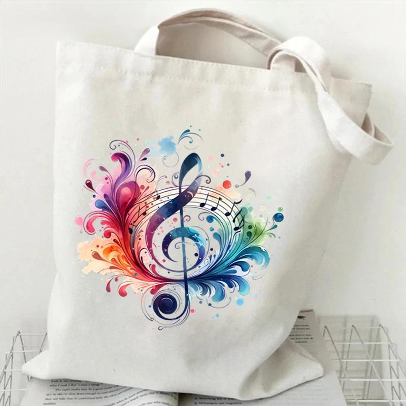 Women Handbags Music Notation Canvas Bag For Teen Fashion Design Side Bag Funny Watercolor Music Note Shoulder Bag For Ladies