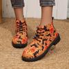 Fashion Woman Lace-up Short Leather Boots 2025 New Fashion Platform Shoes Trend Punk Leather Fashion Christmas Print Botas Plus Size 42
