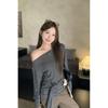 Kumikumi Stylish Slant Shoulder Elegant Stripes Strap Long-Sleeved T-shirt Women's Autumn Waist Slim Fit Versatile Top