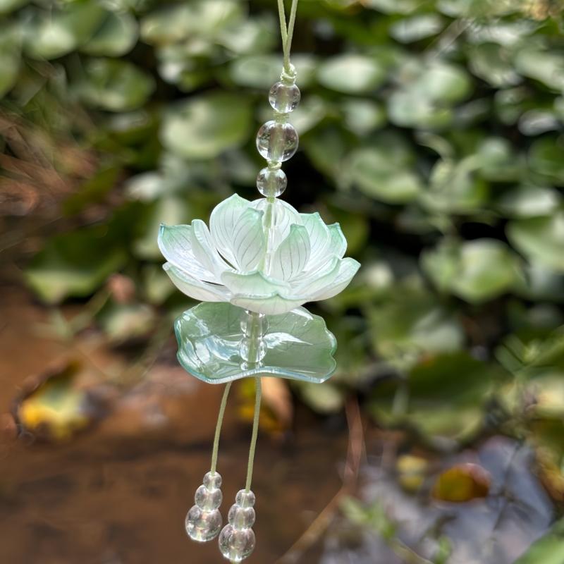 Exquisite Summer Pink Lotus Phone Charm Pendant Simulated Flower Beaded Keychain Car Ornaments For Women Bag Decoration