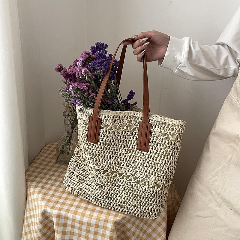 Summer New Straw Woven Bag Trendy Fashion Shoulder Tote Bag Hollow Papyrus Woven Women's Bag