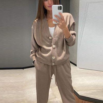 Women's Autumn/Winter 2023 Casual Knitted Hoodie and Pants Set