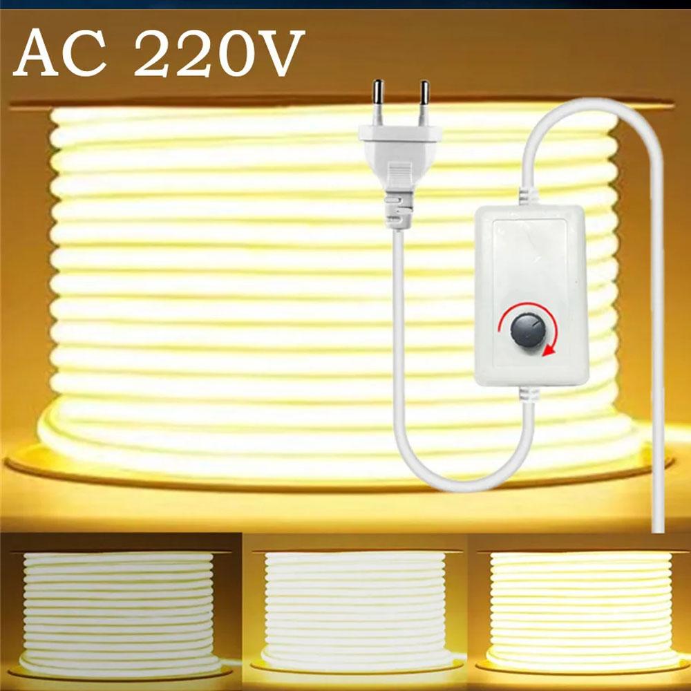 COB LED Strip AC 220V With Switch/Dimmable EU Plug IP65 Waterproof RA95 Lens FOB LED Tape 288LEDs/M For Home Bedroom Decoration